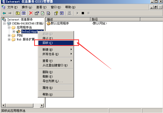 iis 》應(yīng)用程序池 》 找到對應(yīng)網(wǎng)站的應(yīng)用程序池 》右鍵