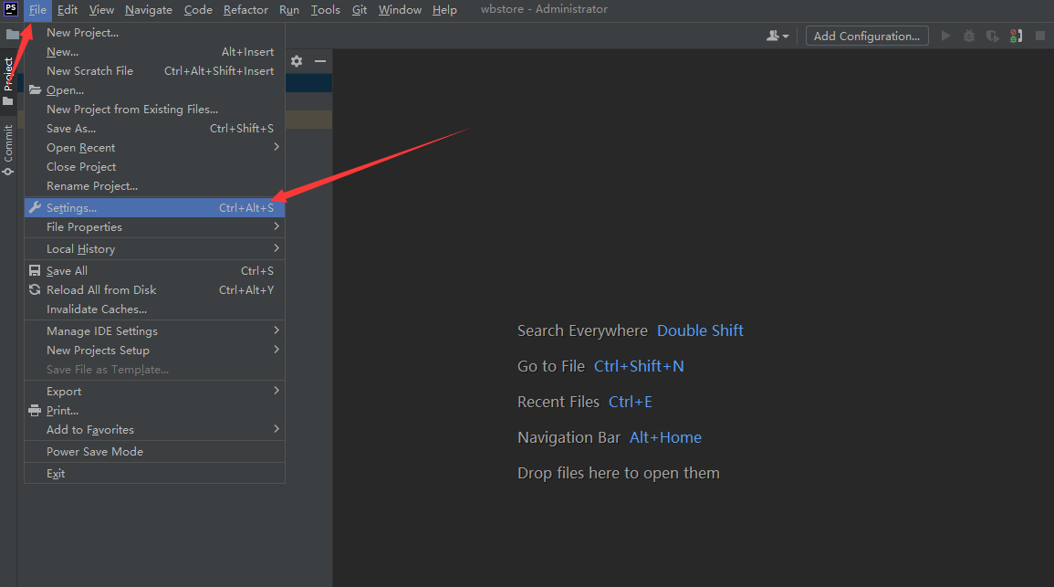 首先我們找到頂部菜單項(xiàng) File 選擇然后選擇 Settings 項(xiàng)或者使用快捷鍵 Ctrl+Alt+S 打開