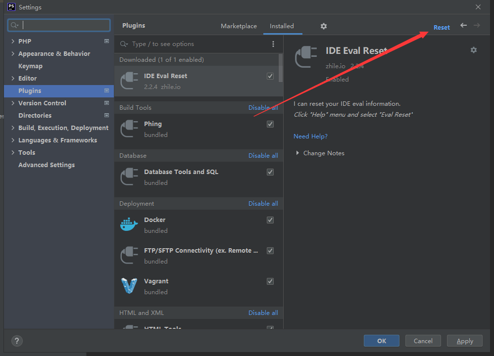 點(diǎn)擊 Install 安裝,完成之后返回 Installed 點(diǎn)擊 Reset 重啟 IDE 即可