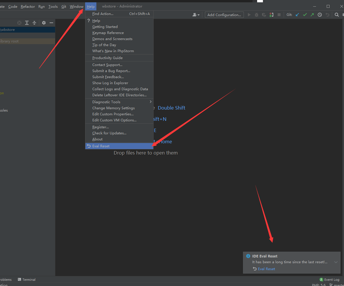 如果IDE沒有打開項(xiàng)目,在Welcome界面點(diǎn)擊菜單:Get Help -> Eval Reset